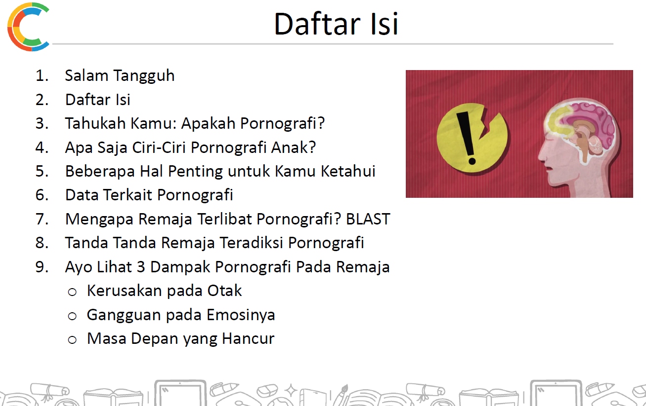 Buku ini mengajak kamu untuk memahami apa itu pornografi, apa saja dampaknya kepada anak dan remaja, serta bagaimana kamu bisa jadi remaja tangguh, yang mampu menjaga diri agar tidak terpapar pornografi.