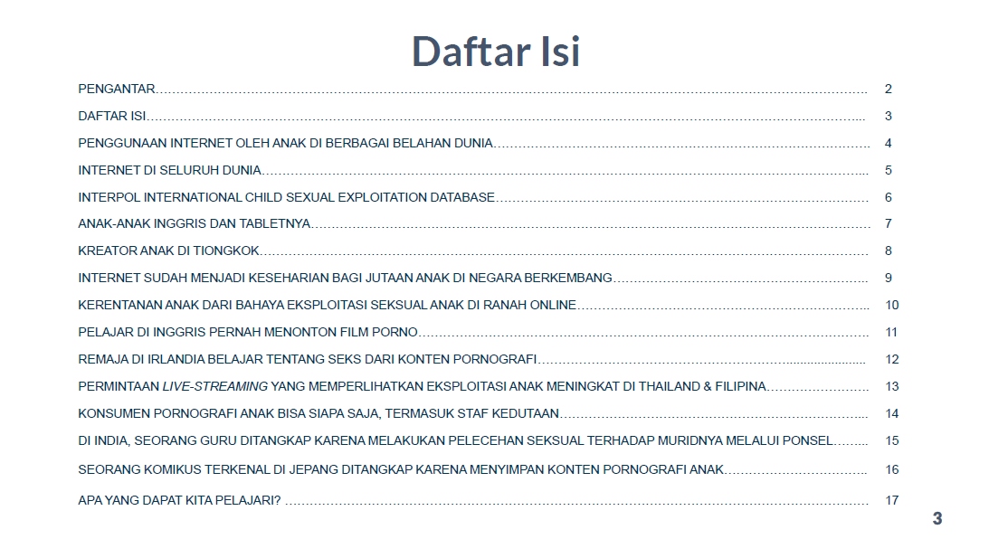 Eksploitasi Seksual Anak di Ranah Online telah menjadi ancaman global dalam beberapa tahun terakhir. Modul ini dibuat sebagai pengantar bagi para pendidik dan orang tua dalam memahami fenomena eksploitasi seksual anak di ranah online secara global